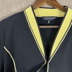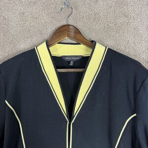 Ming Wang Blazer Womens XL Black Yellow Open Front Contrast Trim Knit Jacket Bow