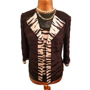 Ming Wang Brown & Cream Animal Print Tank & Jacket Set Size S 3/4 Cuffed Sleeve