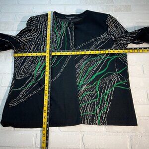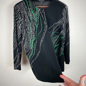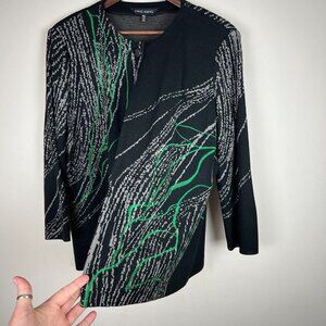 Ming Wang Cardigan Jacket Womens PXL Black Gray Green Knit 3/4 Sleeve Petite XL Very good condition! Measurements are in the photos. Single button closure at neckline Shoulder pads Fabric content and washing / care information in photos - see tag photos. All preowned items have been cleaned. Stored in a smoke and pet free home. Thanks for looking!