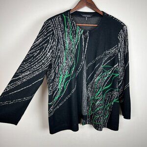 Ming Wang Cardigan Jacket‎ Womens PXL Black Gray Green Knit 3/4 Sleeve Petite XL