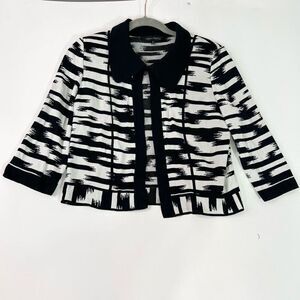Ming Wang Cardigan Jacket Womens Small Black White Open Front Collared Knit