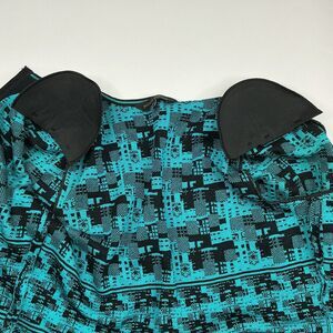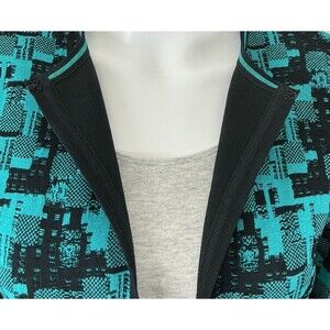 Ming Wang Cardigan Size S Turquoise Black Artsy Print Quiet Luxury Art-to-Wear