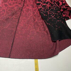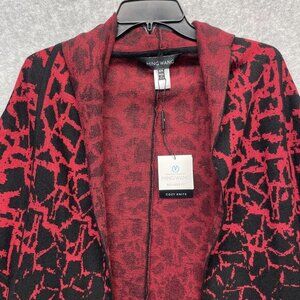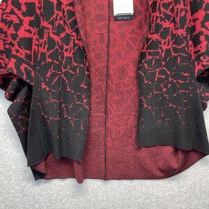 Ming Wang Cardigan Sweater Womens S/M Poncho Red Black Knit Wrap Short Sleeve