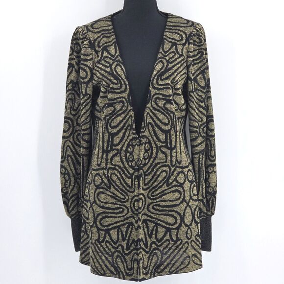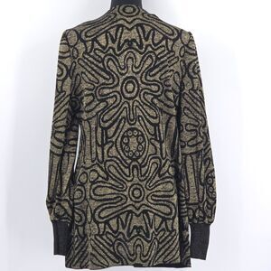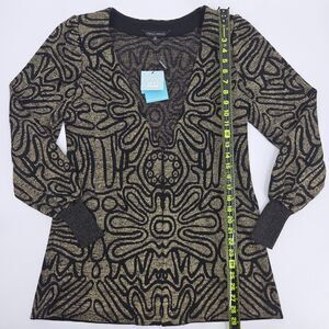 Ming Wang Cardigan Sweater Womens Small Black Gold Metallic Knit Quiet Luxury