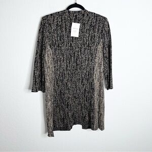 Ming Wang Cardigan Sweater Women Small Mid Length Tan Black 3/4 Sleeve Knit B6