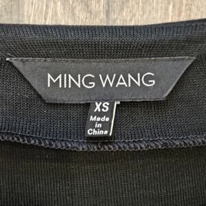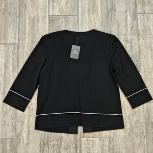 Ming Wang Cardigan Womens Size XS Black Open Front Pink Ribbon Grommet Trim