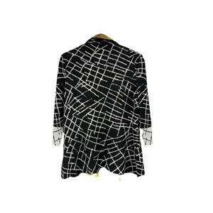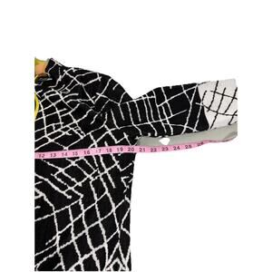 Ming Wang Chartreuse Black White Pattern Knit Jacket Career Cardigan Womens M