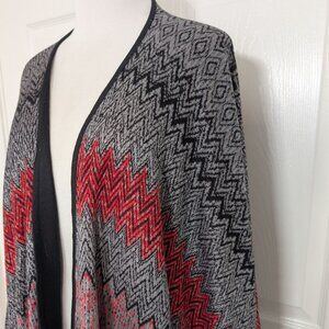 Ming Wang Chevron Shawl Womens One Size Black Red Knit Heavy Open Front Shrug