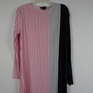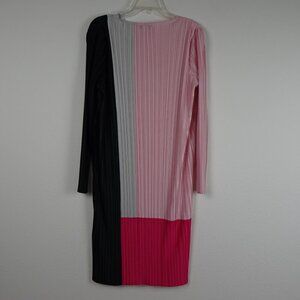 Ming Wang Colorblock Dress Women's Size M Pink Pleated Crinkle Crepe de Chine