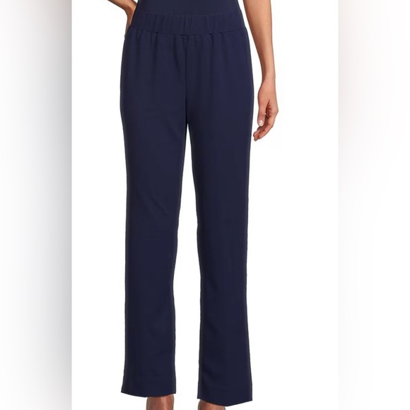 Ming Wang Deco Stretch Crepe Back Slit Hem Pull-On Pants NWOT PREPPY MINIMALIST