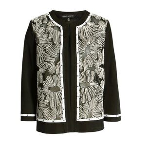 Ming Wang Floral Embroidered Knit Jacket Black and White Size L