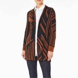 Ming Wang Geo Stripe Cozy Cardigan Brown and Black size Large