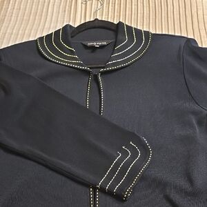 Discover the refined elegance of the Ming Wang Green and Black Blazer, a perfect blend of style and comfort. This blazer features a structured design with a sophisticated color palette, making it ideal for both professional and semi-formal occasions. Crafted with attention to detail, it offers a timeless addition to any wardrobe.