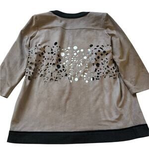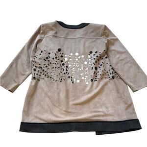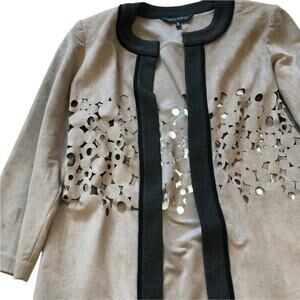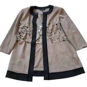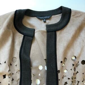 Ming Wang Heritage Laser Cut Faux Suede Open Jacket M Tan Black EUC
