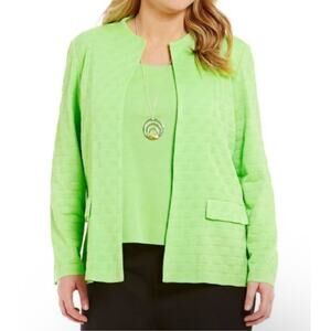 Ming Wang Jacket Size 3X Fern Green Check Textured Knit Plus Curvy Open Cardigan