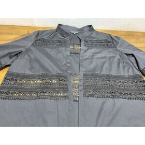 This Ming Wang Jacket is a black lace cardigan sweater in size 1X for women. It features a tight-knit pattern with long sleeves and a classic fit, making it suitable for various occasions like travel, weddings, parties, casual outings, formal events, and business settings. The open front design with accents adds a touch of elegance, while the round neckline and knit fabric ensure comfort and style. Ideal for all seasons, this designer piece combines a blend of classic and preppy elements, making it a versatile addition to any wardrobe.pre owned good condition we ship fast measurements are in the pictures