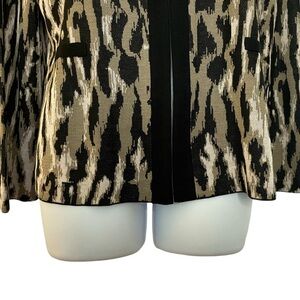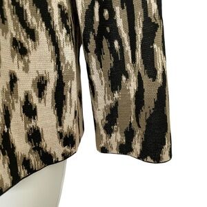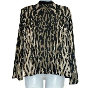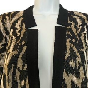 Ming Wang Knit Jacket with Notch Collar in Black Tan Cream Animal Print Size M