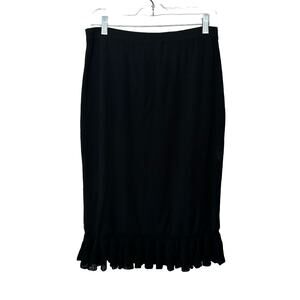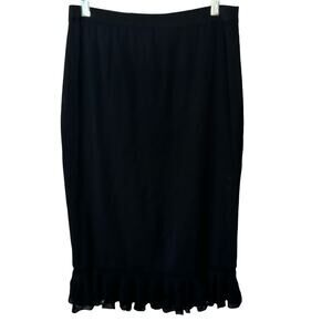 Ming Wang Knit Midi Skirt Womens Size M Black Ruffle Hem Pull-On Classic Stretch