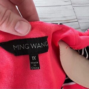 Ming Wang Long Cardigan In Coral, Black and White size 1X
