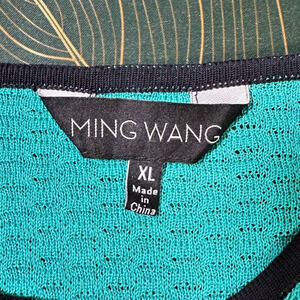 Ming Wang Long Sleeve Acrylic Knit Cardigan Sweater Tiffany Blue Black Women XL