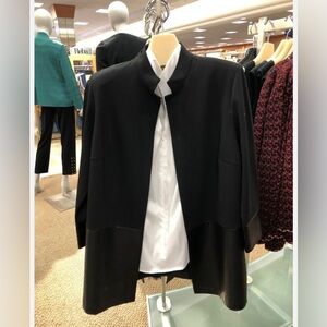 Ming Wang Mandarin Collar Leather Trim Jacket Large