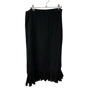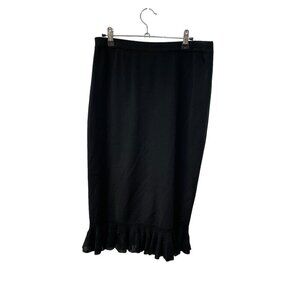 Ming Wang Midi Pencil Knit Skirt Ruffle Flounce Hem Acrylic Knit Black Womens M
