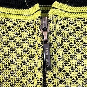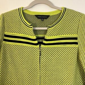 Ming Wang | Neon lime green & black zippered cardigan sweater Womens size XS