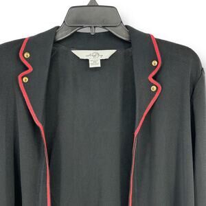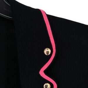 Ming Wang Open Front Cardigan Jacket Womens Sz PM Petite Medium Black Hot Pink
