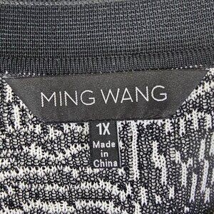 Ming Wang Open Hook Cardigan Topper 1X Black & White 3/4 Sleeve Geometric Artsy
