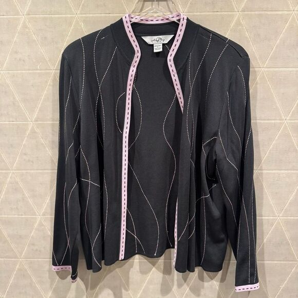Ming Wang Pink and Gray Open Front Cardigan L