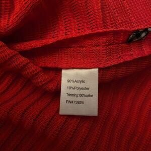 Soft and stretchy acrylic/poly knit in a poppy red- kind of an orange/red. Textured/ribbed fabric.