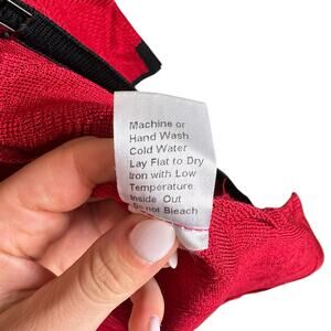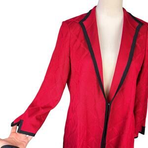 Ming Wang Red Geometric Diamond Knit Black Trim 3/4 Sleeve Cardigan Sweater