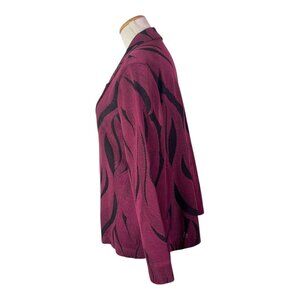 Design: Knit blazer jacket with decorative buttons at front. Fastens with one hood at front. Unlined. No pockets. Has shoulder pads.