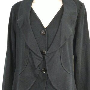 Ming Wang Black Acrylic Long Sleeve Snap Up Knit Cardigan Jacket with Shoulder Pads