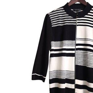 Ming Wang Striped Colorblock Elbow Sleeve Zip Jacket Sz L
