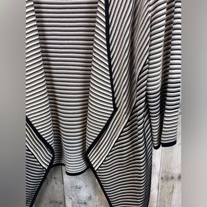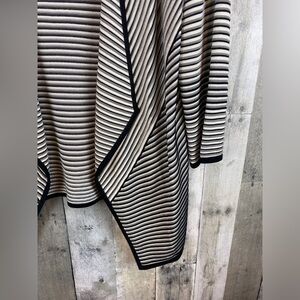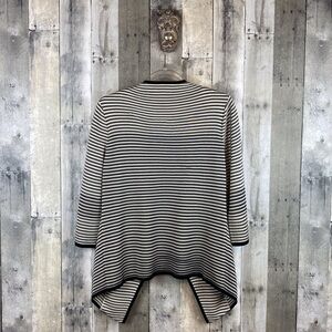 Ming Wang Striped Draped Open Front Cardigan Jacket in Black & White Size Small.