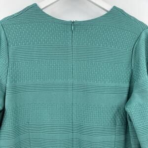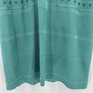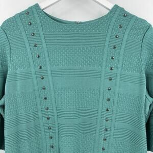 Ming Wang Stud Trim Tonal Stripe Knit Dress Knee Length Turquoise Size Medium