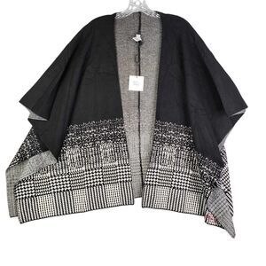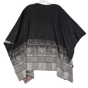 Ming Wang Sweater Cape One Size Black Soft Poncho Wrap Logo Embroidered New