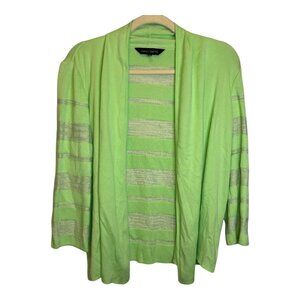 Ming Wang Sweater Women's Size Medium Petite Knit Cardigan Stripes Neon Green