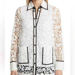 Ming Wang Sz S magnificent openwork white/black trim lace jacket Heritage lovely
