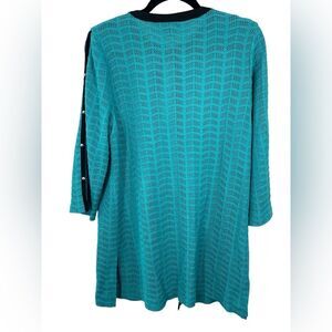 Ming Wang Teal Turquoise Cardigan Jacket Black Trim Size SMALL