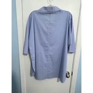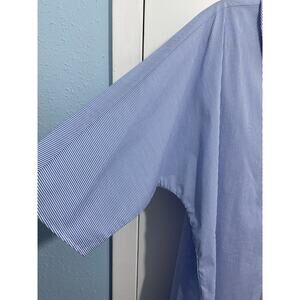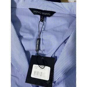 Ming Wang Tunic Blouse Large Blue Striped 3/4 Sleeve Oversized Office Preppy NWT