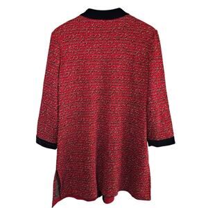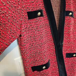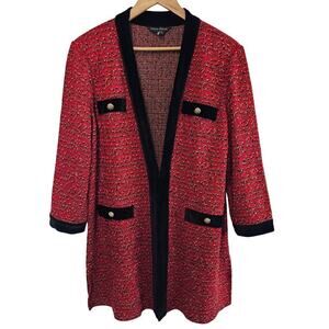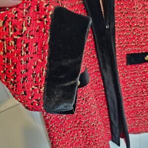 Ming Wang Velvet Embellished Tweed Jacket Womens Large Red Black Knit Luxury