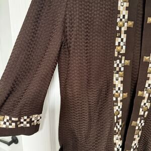 Ming Wang Women's Brown Weave Knit Beaded Cardigan Jacket Size Large