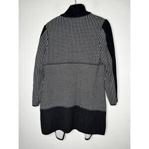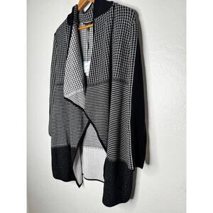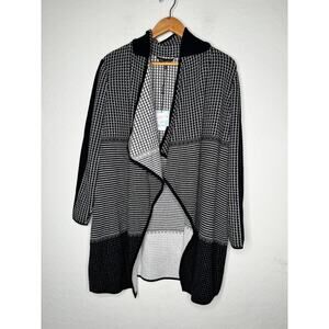 Ming Wang Womens Checkard Black White Sweater Open Cardigan Size Medium Oversize