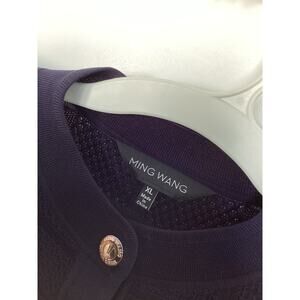 Ming Wang Women's Long Sleeve Knit Windowpane Button Front Jacket Blue Size XL