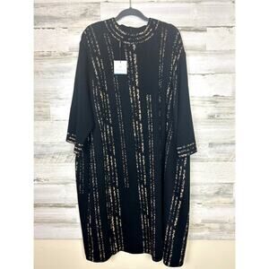 Ming Wang Women’s Plus 3X Black Gold Metallic Stripe Knit Shift Midi Dress NWT