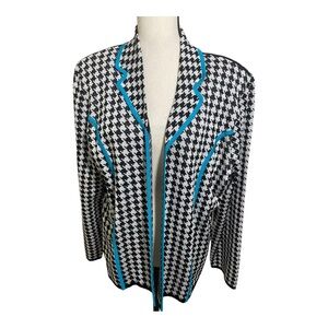 Ming Wang open front gingham pattern jacket. Heritage fit. Black white blue XL