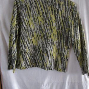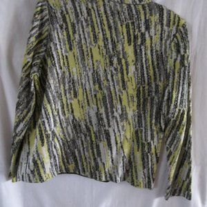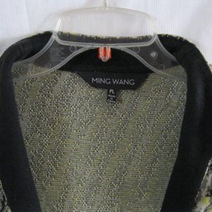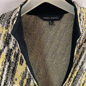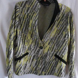This jacket is by Ming Wang - it is yellow and black with black button and black trim where pocket