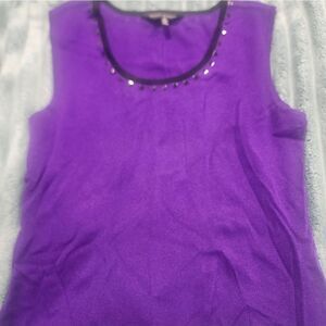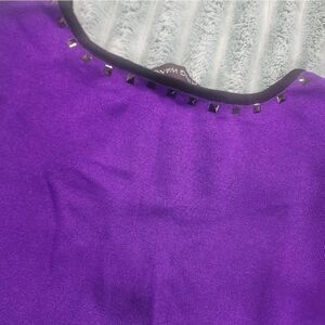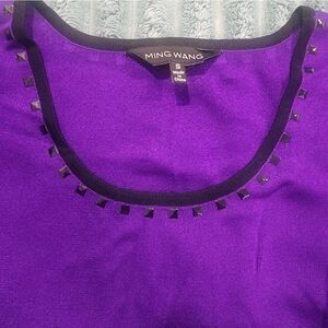 Elegant purple top with studded neckline. Perfect for a chic look. MING WANG SIZE S
